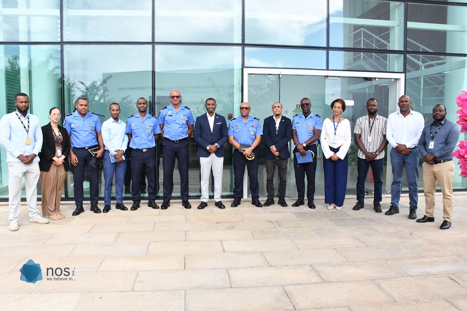 A delegação da Polícia Nacional foi recebida pelo Presidente do Conselho de Administração da NOSi, Eng.º Carlos Tavares Pina, pelo Administrador Executivo, Eng.º Lumumba Barbosa, e respetiva equipa. Durante a visita, o Diretor Nacional teve a oportunidade de conhecer as principais infraestruturas da NOSi, bem como algumas áreas operacionais e estratégicas, com destaque para o SOC e o CSIRT da RTPE.